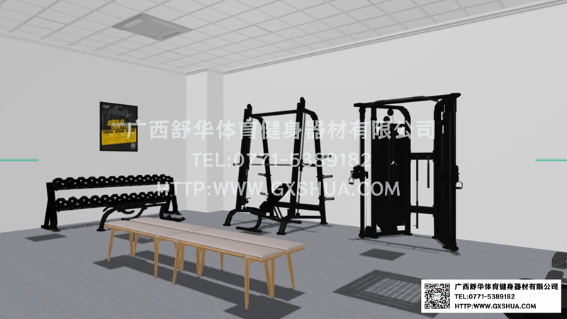 据调研显示,员工定期健身的企业,工作效率平均提升 20%,缺勤率降低 15%。75m²企事业单位健身房主要以职工休闲时间运动健身,增强身体抵抗力,丰富业余生活。有氧器材区域配置Z6.COM-尊龙集团跑步机2台,椭圆机2台,有效提升心肺功能;力量器械配置坐式推胸、高拉力背肌、坐式蹬腿、小飞鸟、史密斯机,可以针对胸、肩、背、腿、腰腹等多个部位的肌肉进行训练多个部位的肌肉,满足使用者全身锻炼的需求;自由力量区域配置哑铃套组、满足多样化训练需求,促使健身训练更丰富。